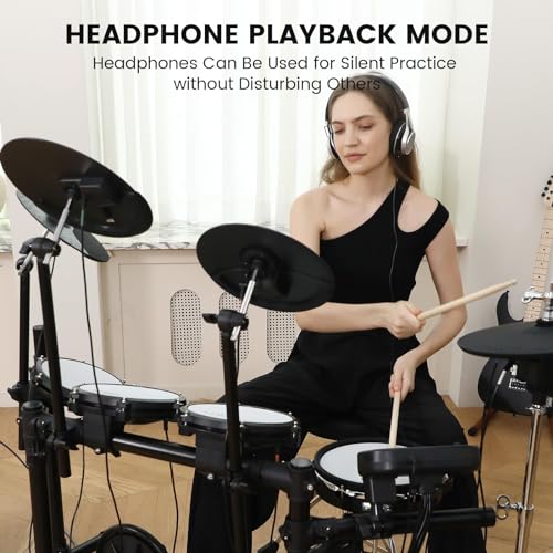 One of the standout features of this electric drum set is its realistic sound. Thanks to advanced sound sampling technology, each drum pad accurately reproduces the sound of its acoustic counterpart, providing an authentic drumming experience without the need for an elaborate setup. Additionally, this drum set offers a wide range of pre-programmed drum kits and intuitive controls, allowing you to experiment with different sounds and create customized drumming styles. The compact and sturdy design of the Fesley Electric Drum Set allows for easy storage and transportation, making it perfect for both home practice and live performances. Enhance your drumming skills and take your performances to the next level with the Fesley Electric Drum Set with 4 Quiet Mesh Pads.